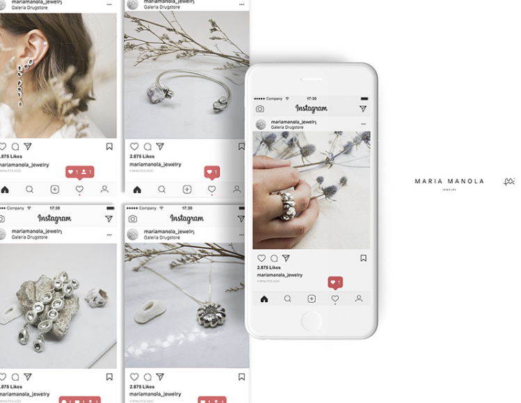 - Estrategia de redes sociales, fotografía de productos y animaciones para "María Manola Jewelry".